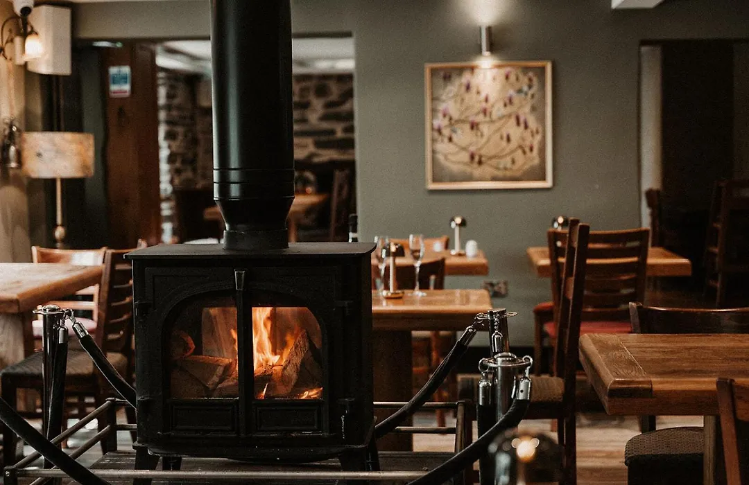 Οι πελάτες μπορούν να απολαύσουν ένα ποτό στο ζεστό μπαρ, διακοσμημένο με ξύλινα δοκάρια.